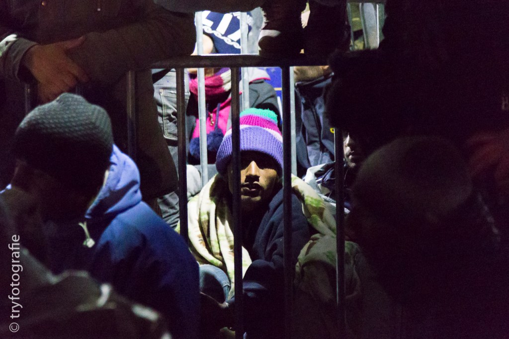 Im Lager angekommen, ist die Lage ruhig, nur der Gestank nach brennendem Carbolineum war noch intensiver geworden. Überall brennen kleine Lagerfeuer. Vor den Essensausgabestellen bilden sich endlose Schlangen. Immer wieder verteile ich Zigaretten, frage woher mein Gegenüber kommt und wie lange sie schon hier ausharren müssen. Iran, Nepal, Marokko, Somalia, Nigeria und Pakistan. Zehn, fünfzehn oder gar seit zwanzig Tagen warten sie hier. Ob sie irgendwelche Informationen hätten, wie es nun weitergehen soll? Niemand wusste, was mit ihnen geschehen wird. Auch die zahlreichen freiwilligen Helfer können diese Frage nicht beantworten. Zumindest stellt sich heraus, dass das Gerücht mit den Granaten und der Grenzverletzung falsch war.